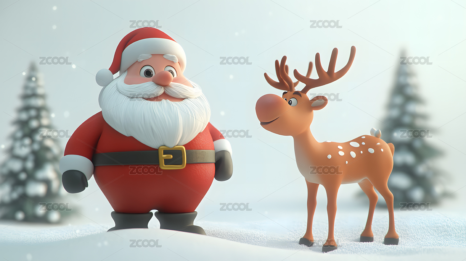 圣诞老人与小鹿 3D卡通插画