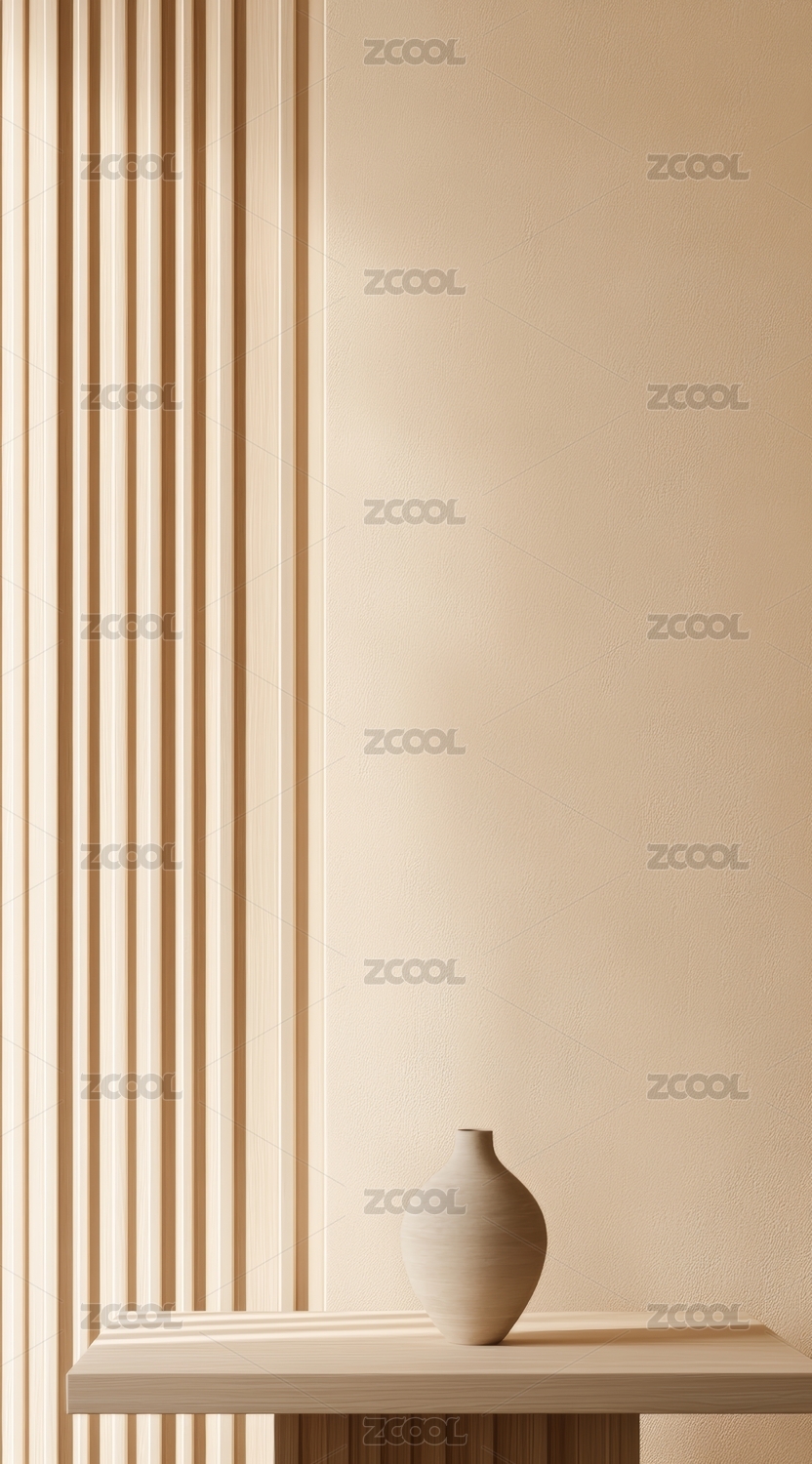 简约室内装饰陶瓷花瓶与竖条纹墙