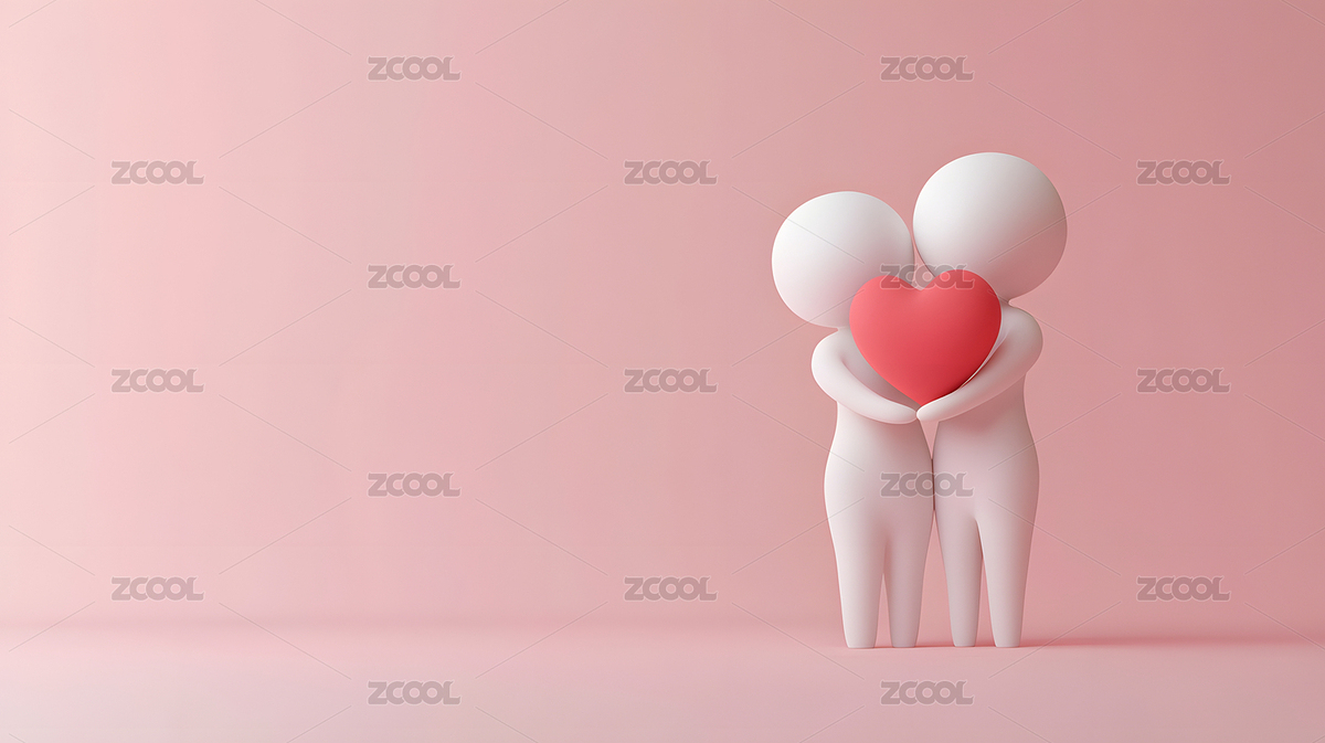 3d,爱心,立体,彩色,饱和,粉色,卡通,两个人,手捧