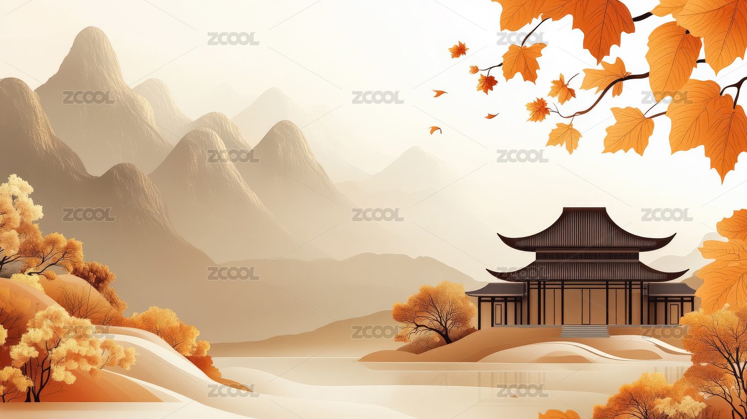 中国传统浅蓝色山水古风国风水墨画背景壁纸