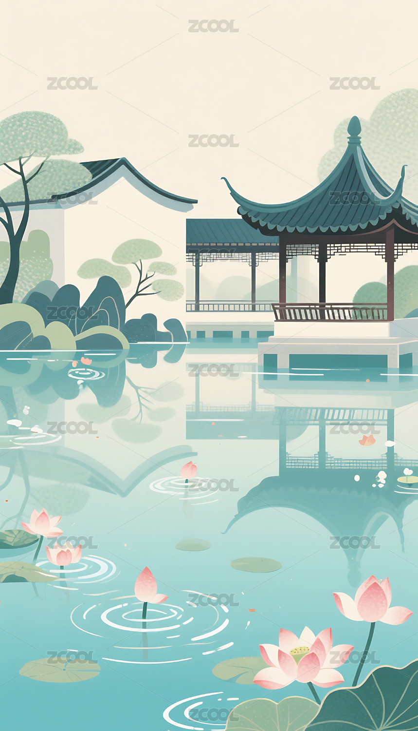 中式苏式园林插画背景