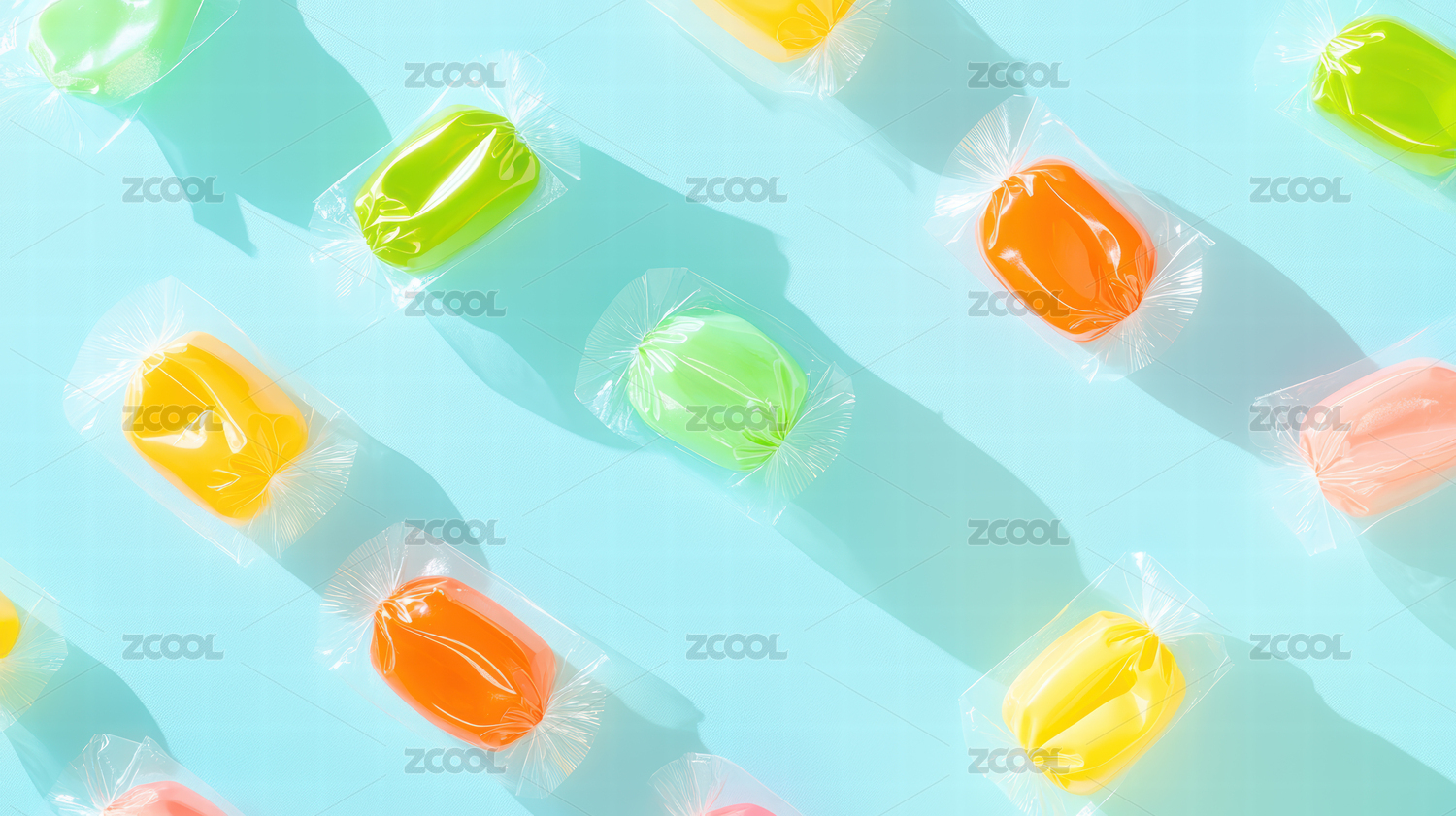 透明塑料袋与浅蓝背景展现简洁有序的排列