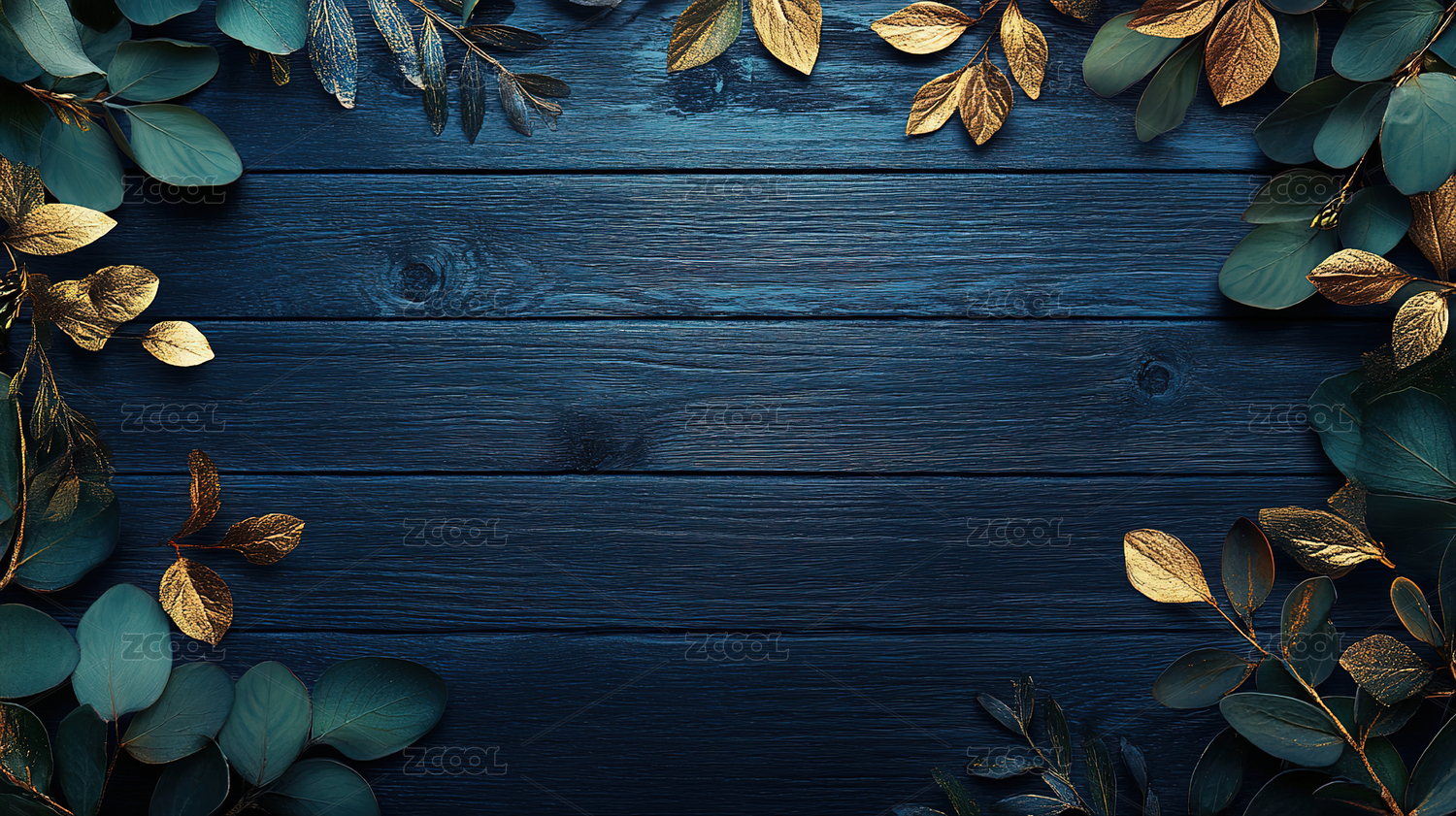 深色木质纹理与金色叶子