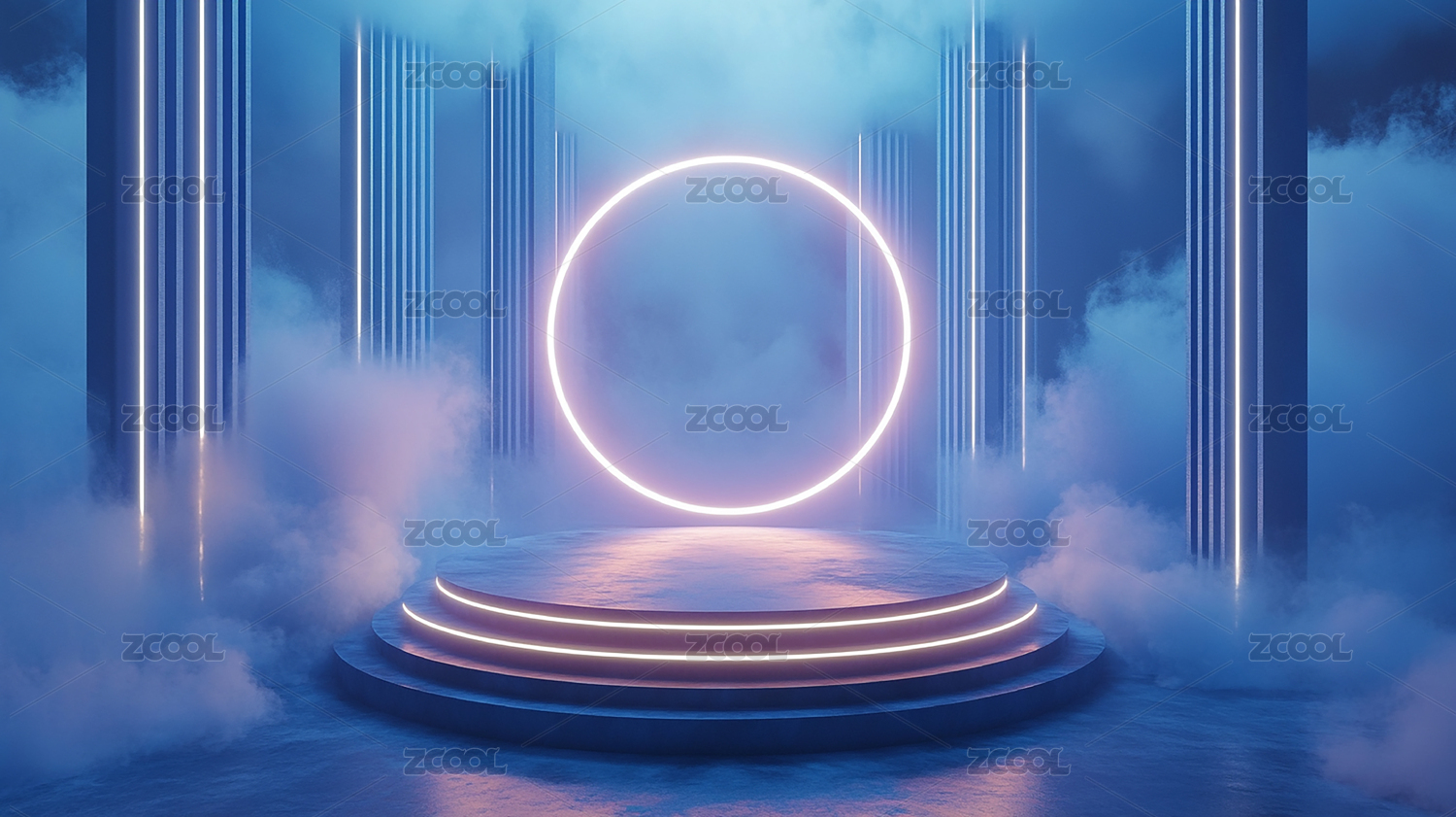 背景,蓝色,圆形,发光,舞台,现代,科技感,科幻,紫色,霓虹灯