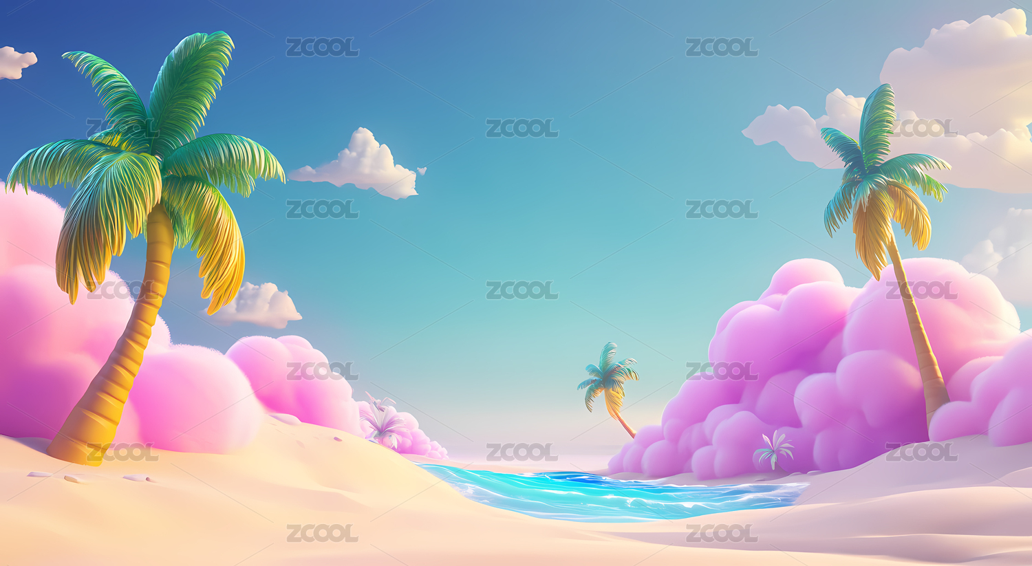 梦幻,粉色,渐变,天空,阳光,景色,球体,海滩,夕阳,棕榈树