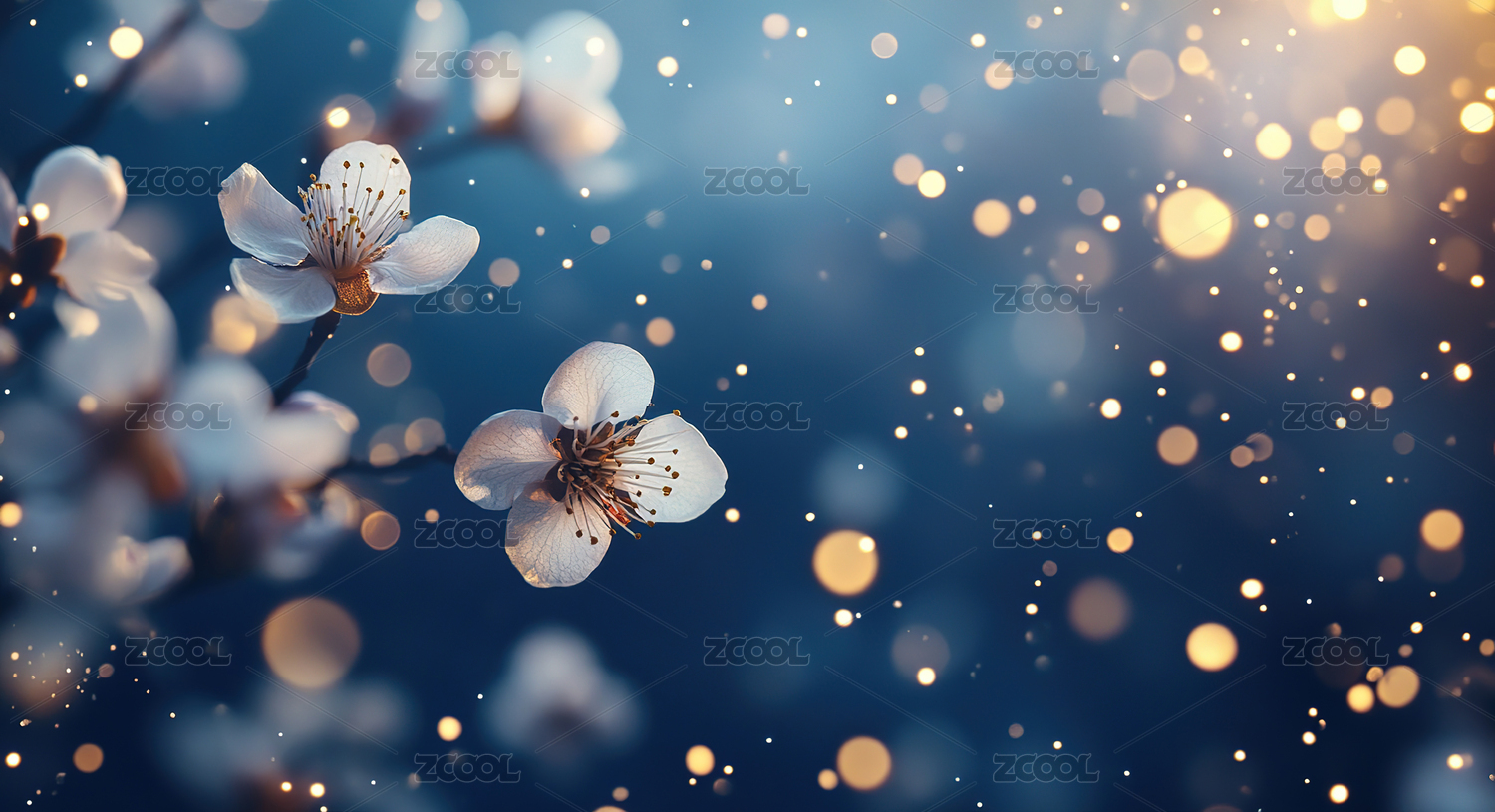 夜晚, 梦幻, 光点, 花瓣, 唯美, 艺术, 精致, 淡雅,繁花, 枝干