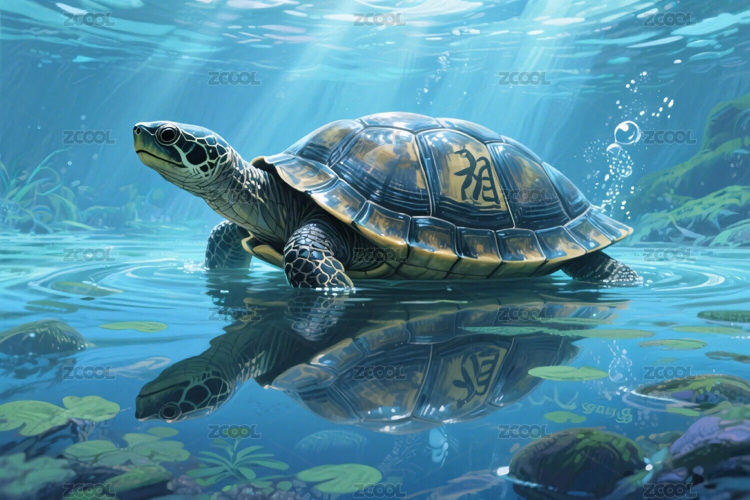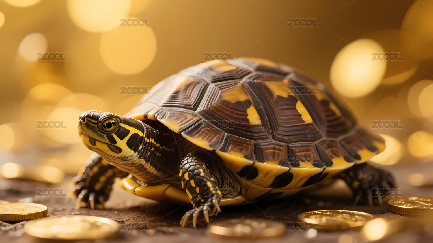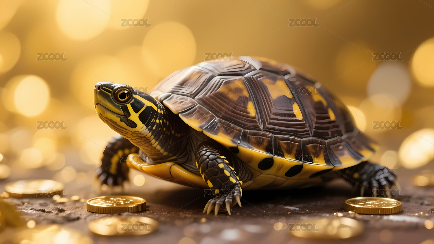 清新明亮地上爬行的乌龟3D立体卡通插画