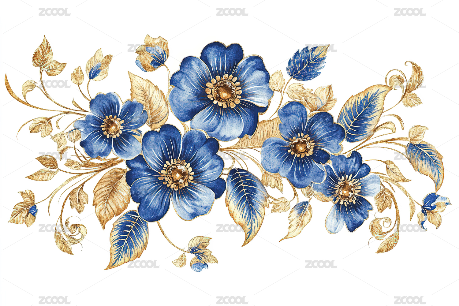 花,花朵,蓝色,金色,唯美,梦幻,清新,简约,极简,留白