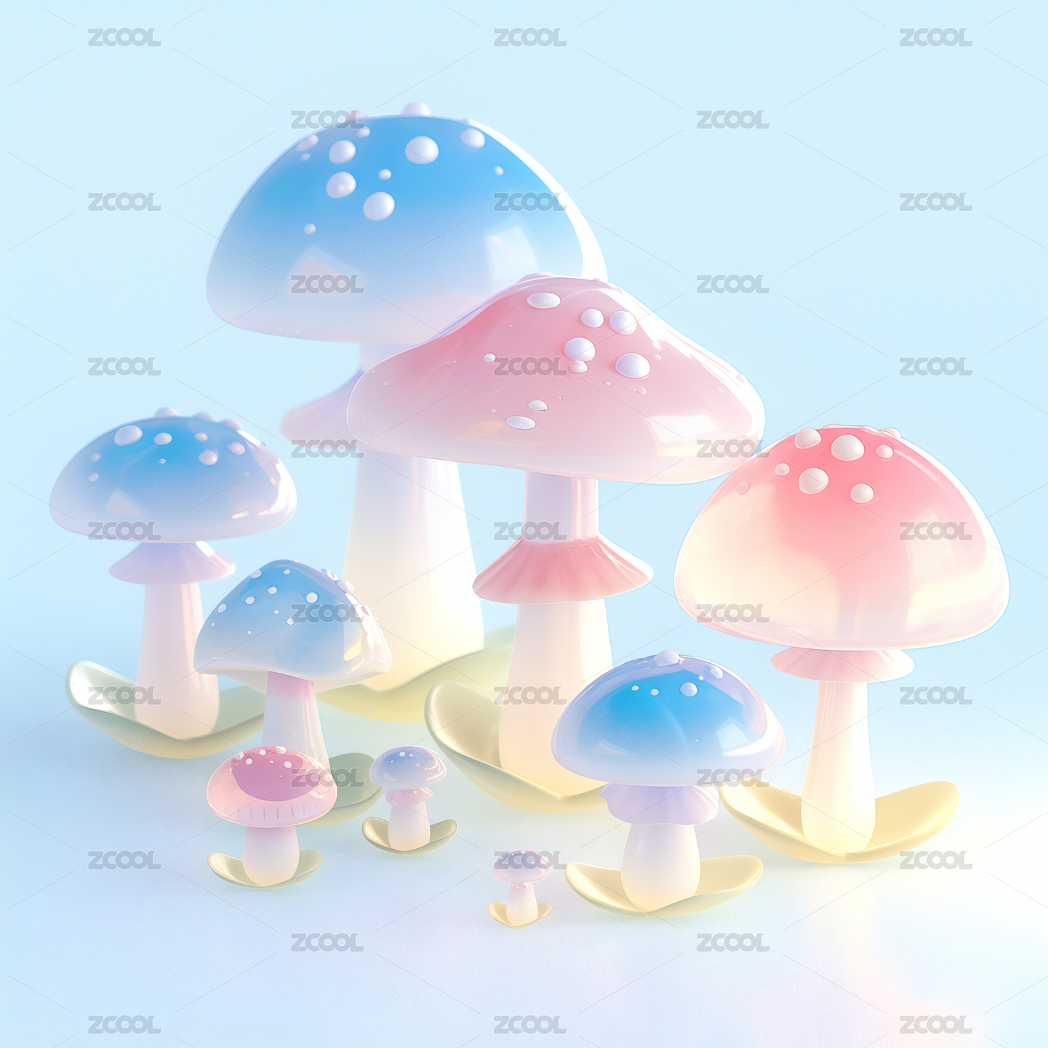 彩色的3D蘑菇