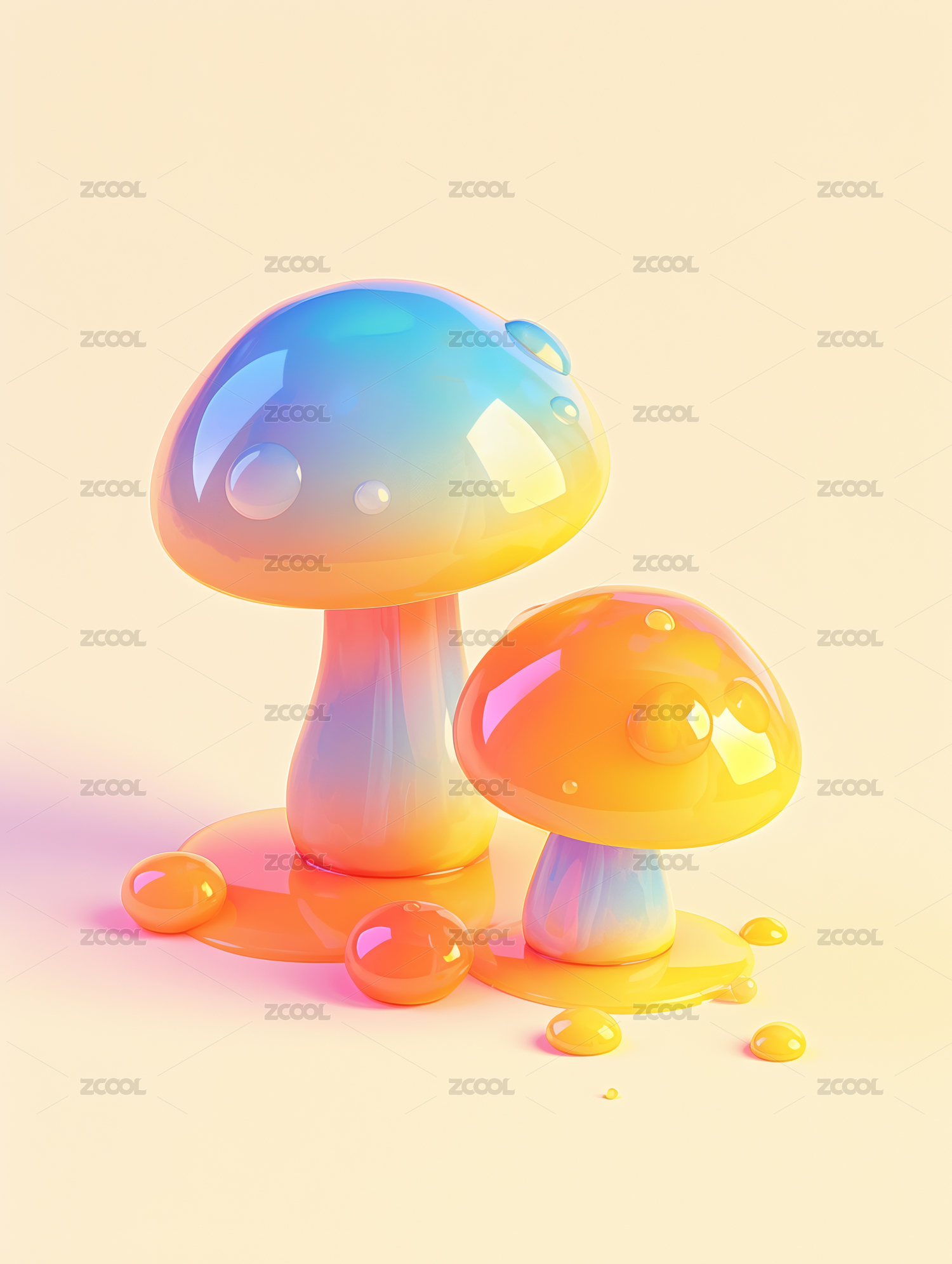 3D,立体,彩色,质感,可爱,蘑菇,食物,菌类,菌菇,美食