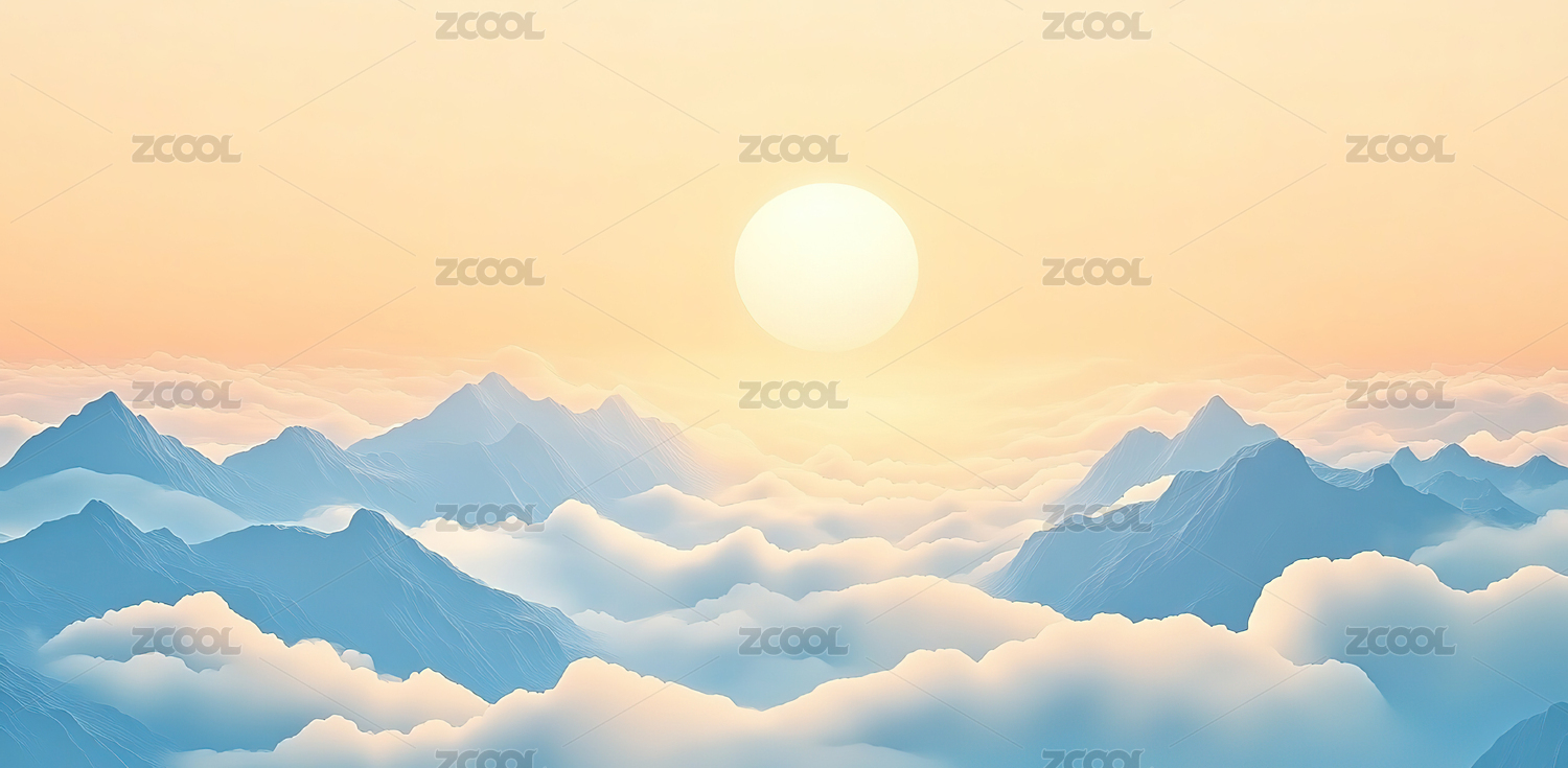 日出山水画抽象山水简约极简主义