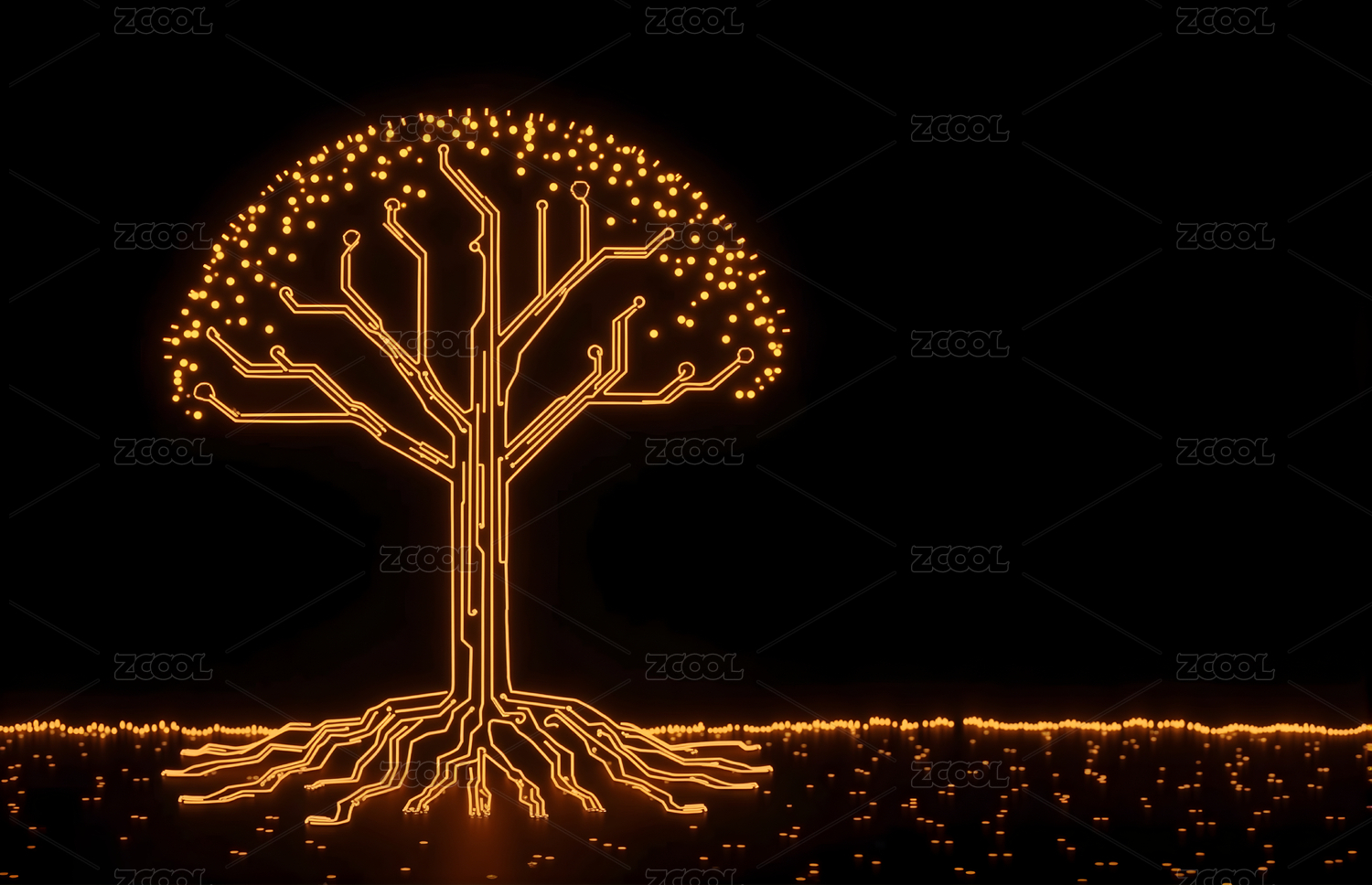科技之树根系发达枝繁叶茂寓意着科技的繁荣与发展
