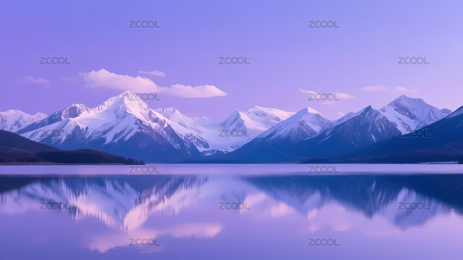 冰雪山脉平静湖面