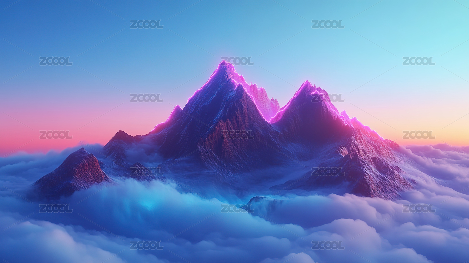 云海之上的粉红雪山