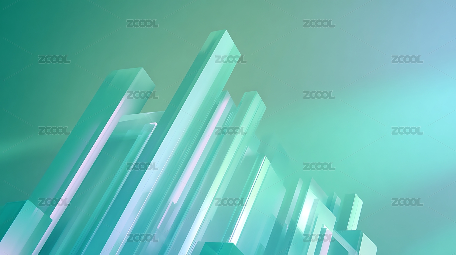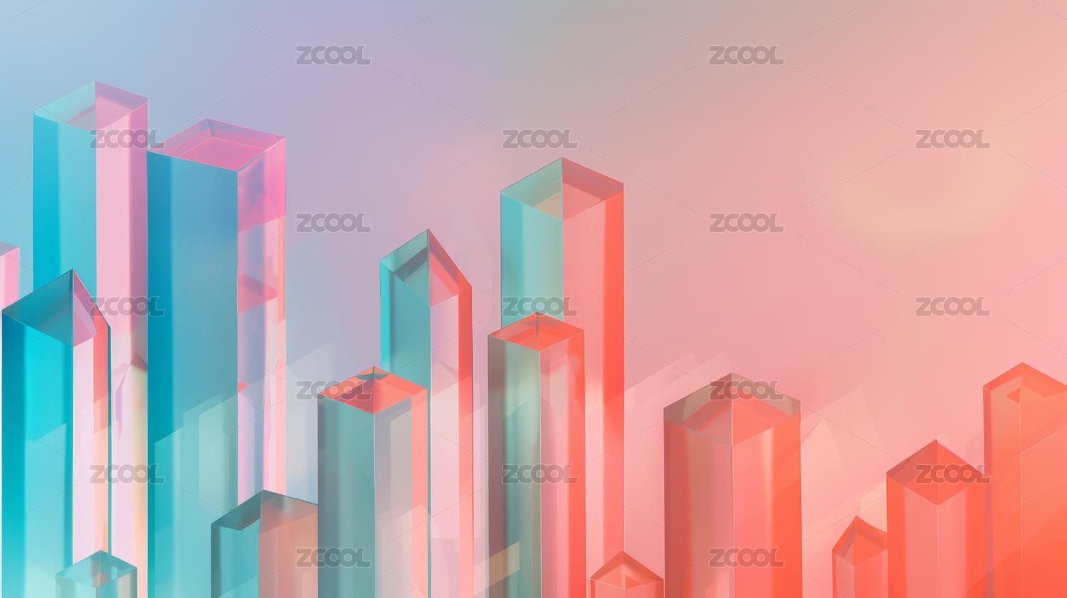 粉色绿色渐变长方体,透明玻璃,商业背景