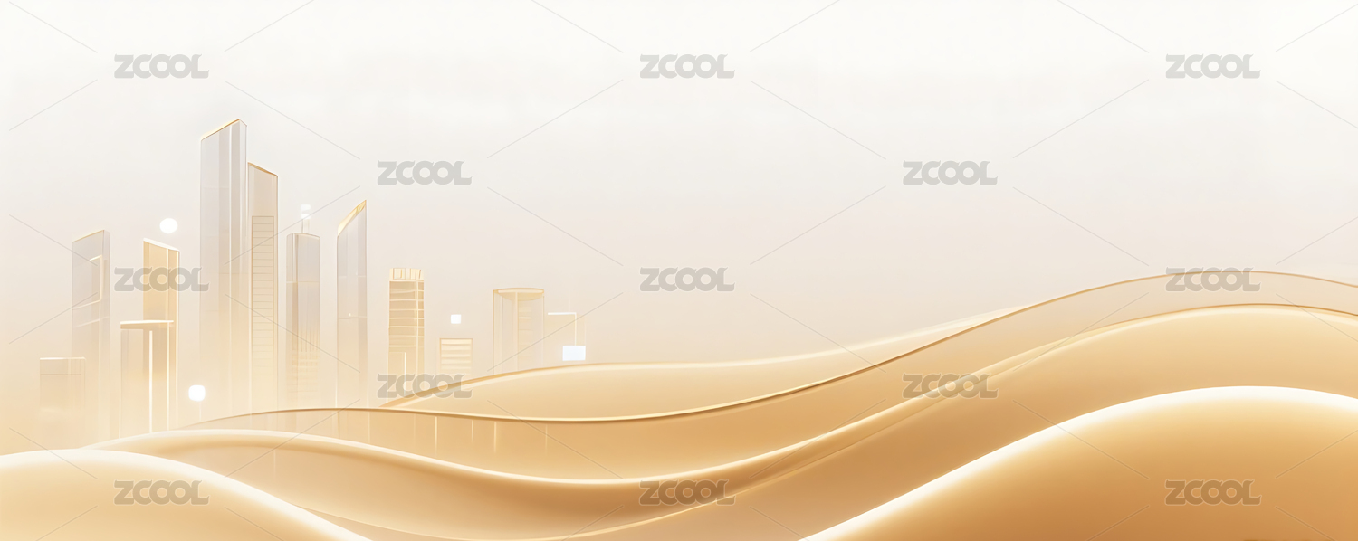 简约金色线条波浪城市建筑群