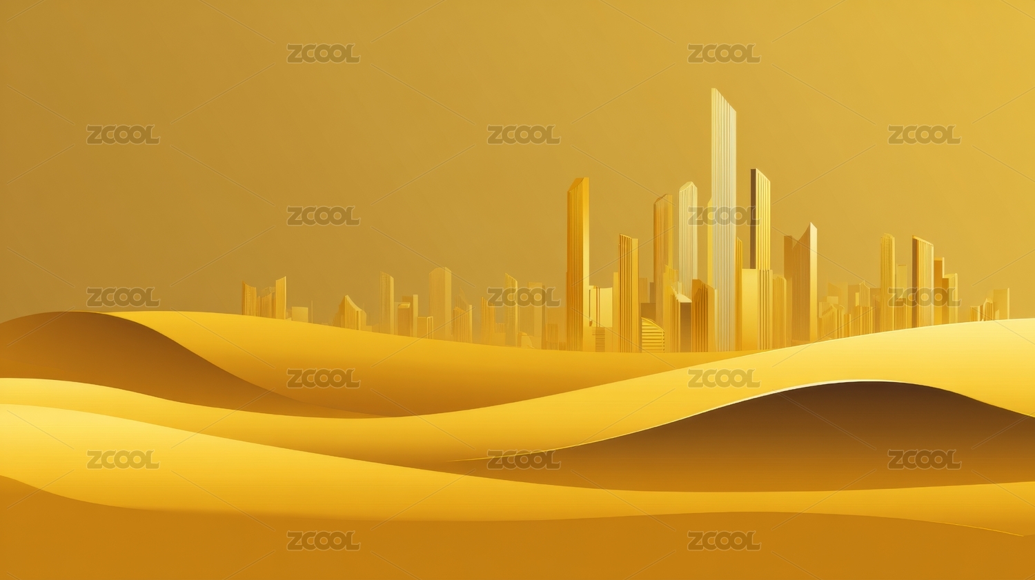沙漠中金色的城市剪影