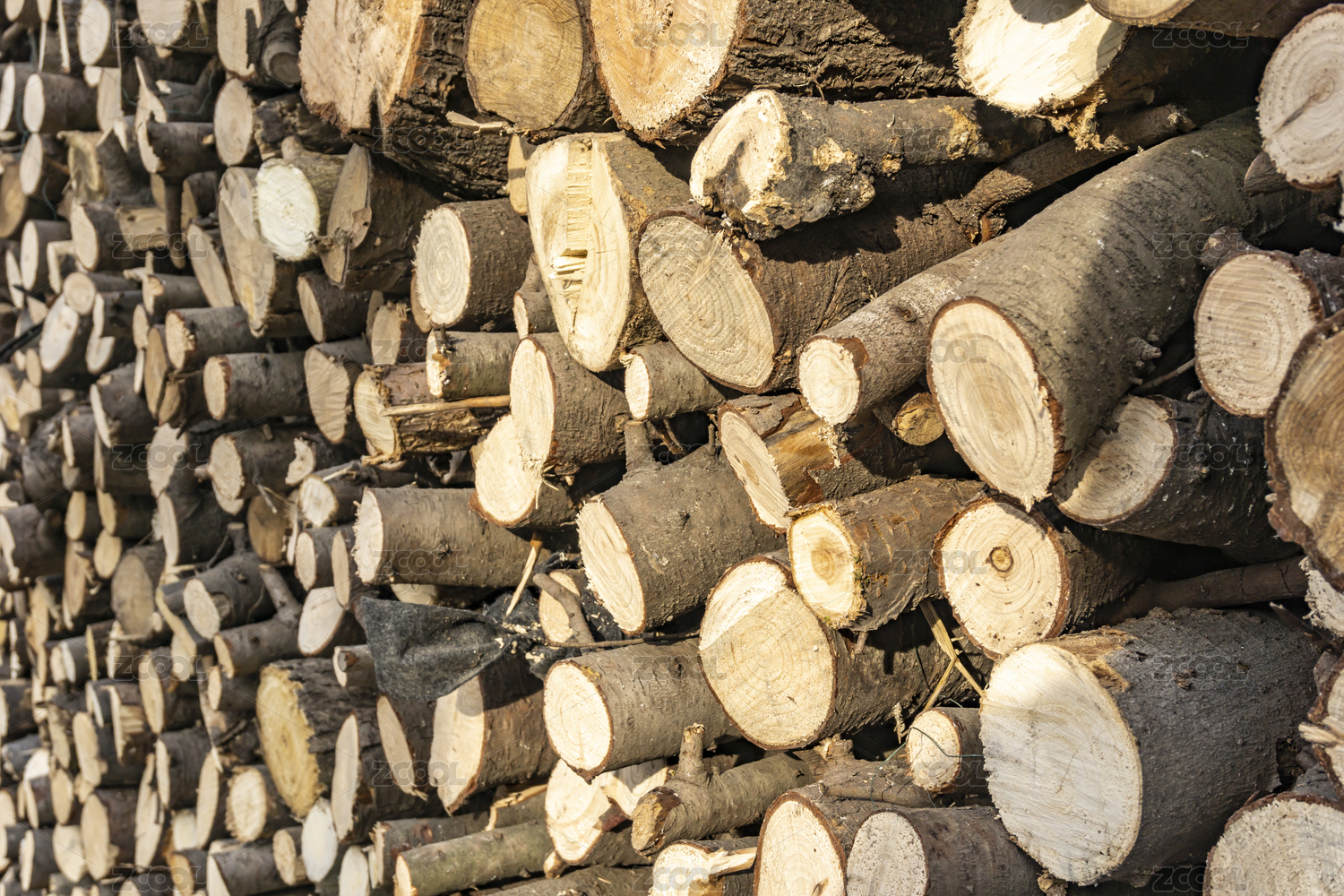 堆放着大量的被砍伐的树木