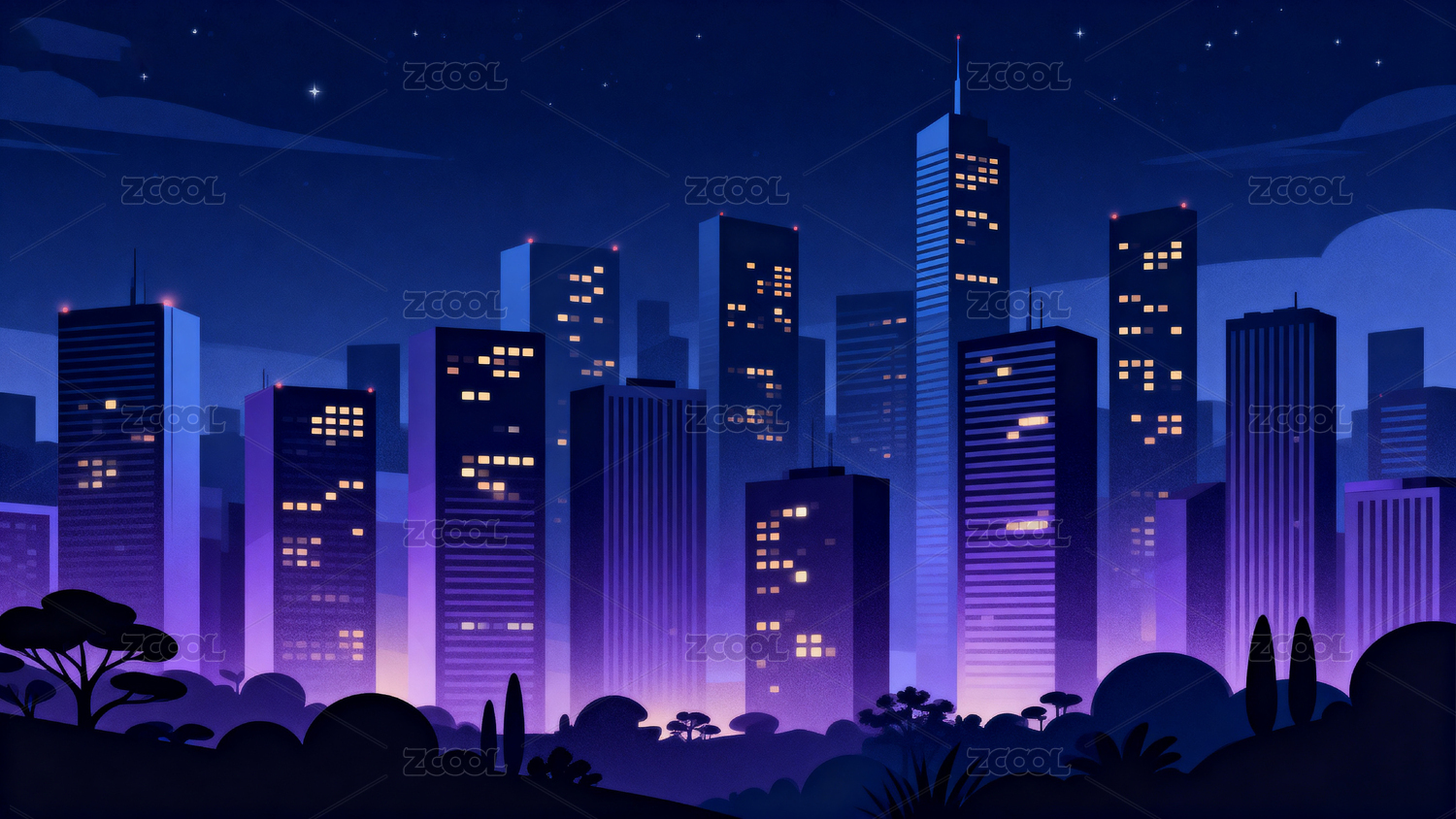 城市夜景插画