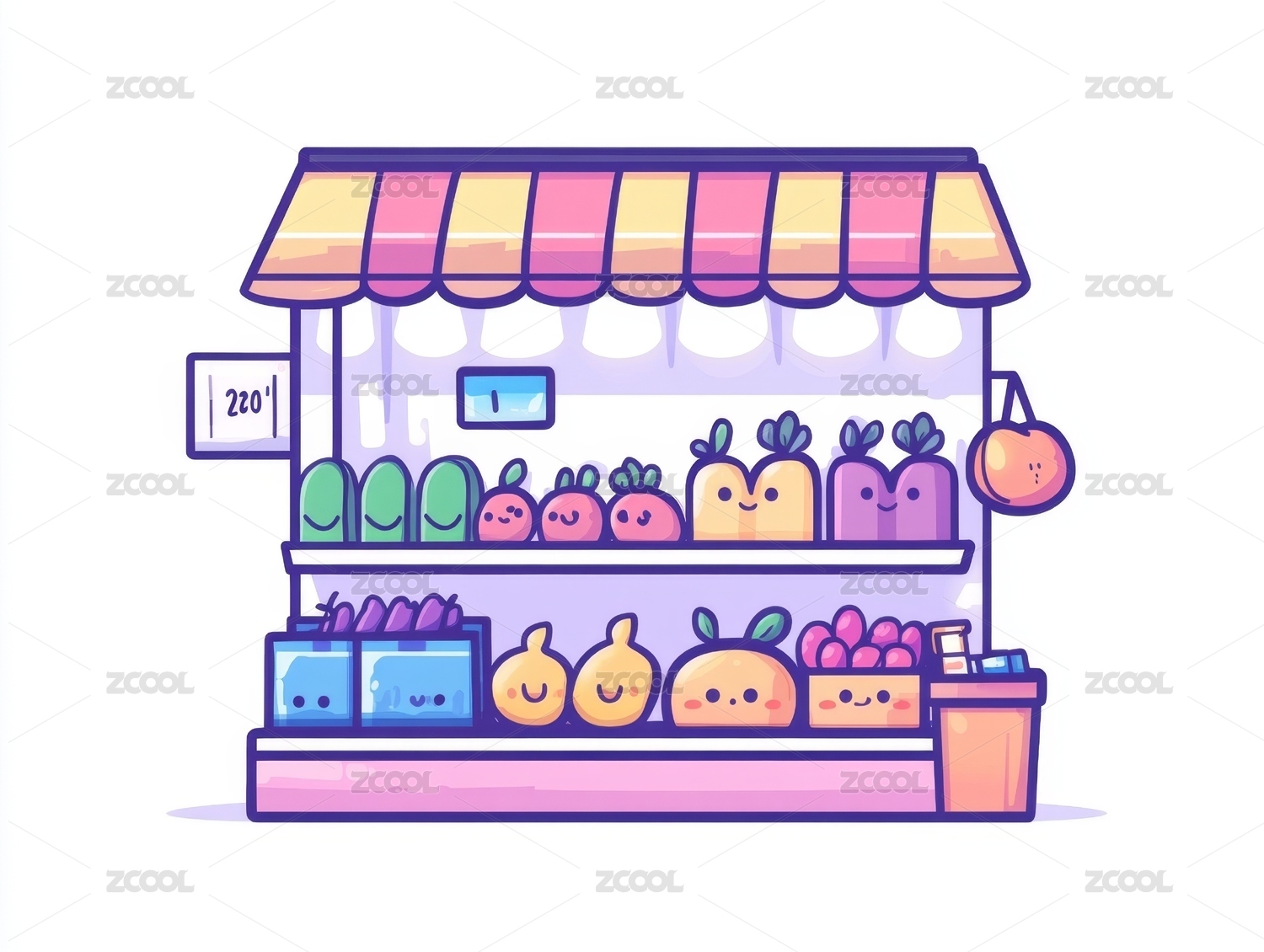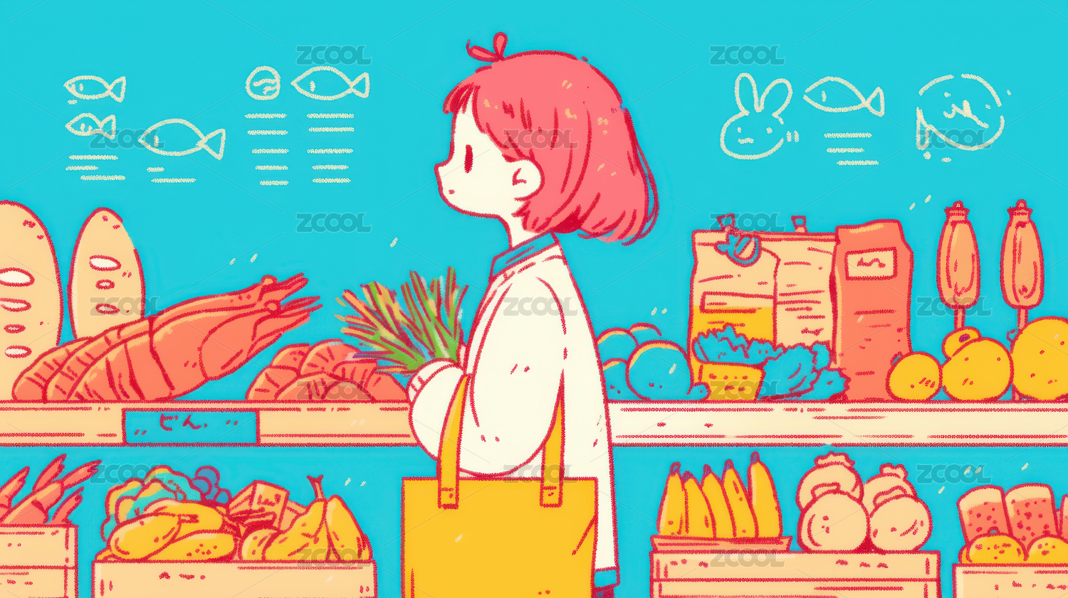 猫咪,杂货店,水果,蔬菜,货架,商品,卡通,可爱,室内