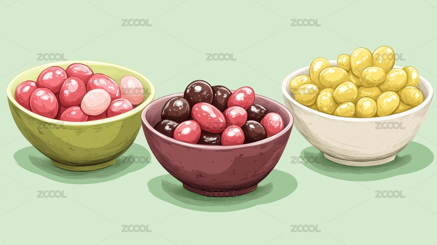 碗,五颜六色,元宵,美食,插画,元宵节,汤圆,食材,糯米