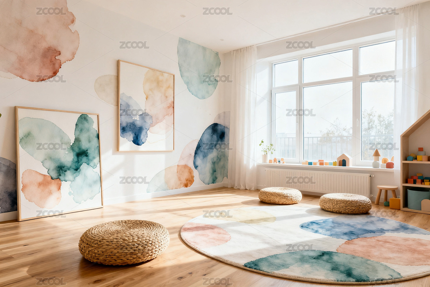 儿童,玩具,游戏室,沙发,储物柜,装饰画,植物,窗户,地板,灯光