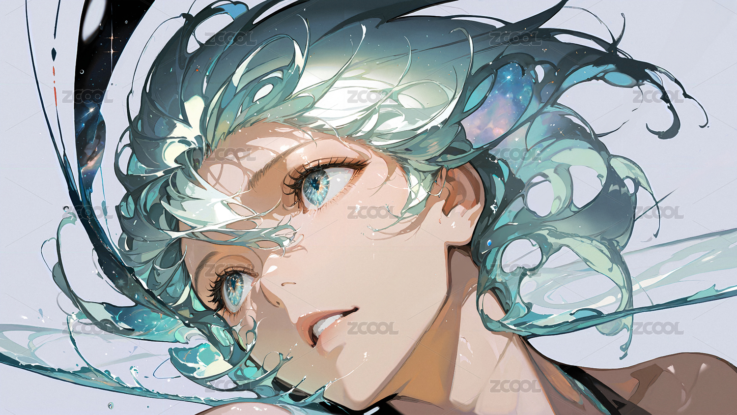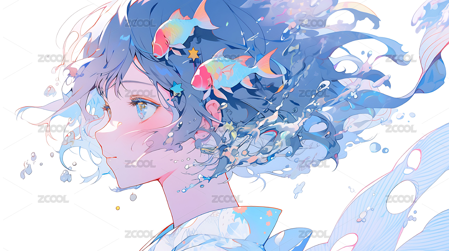水彩星空二次元少女壁纸素材