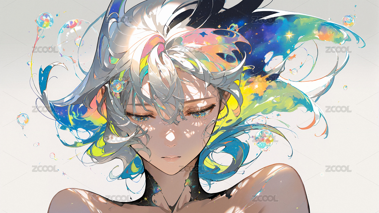 AI,二次元,人像,少女,色彩,泡泡,纯净,抽象,壁纸,素材