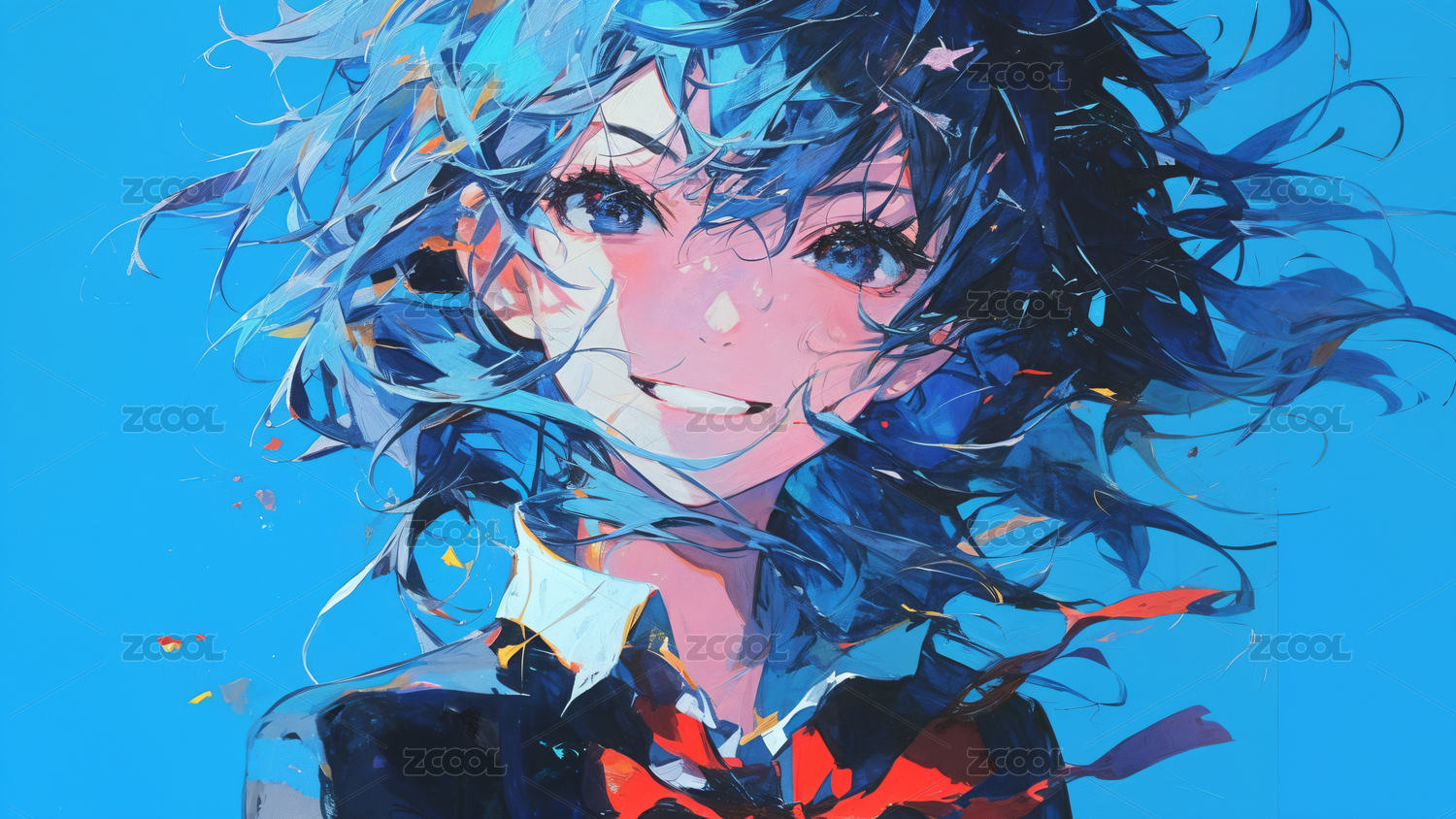 可爱的动漫女孩缤纷的色彩壁纸背景