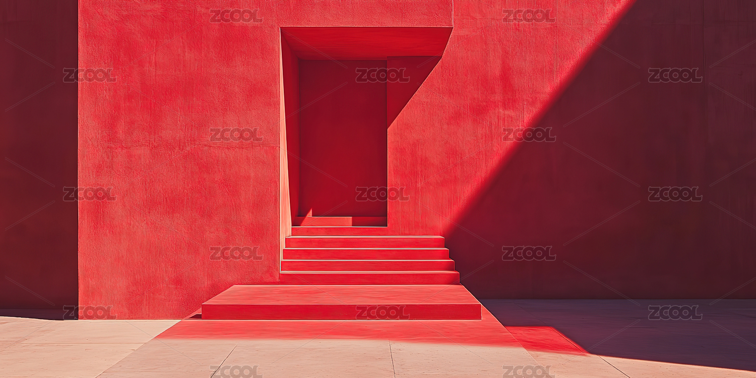 红色背景的红色楼梯