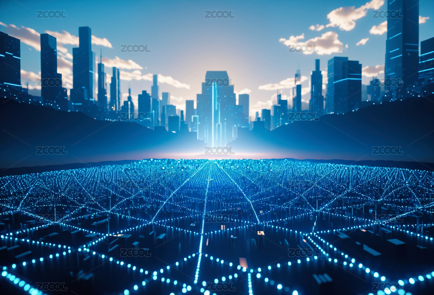 光线, 建筑, 未来, 智能, 技术, 数据, 连接, 虚拟, 数字, 夜景