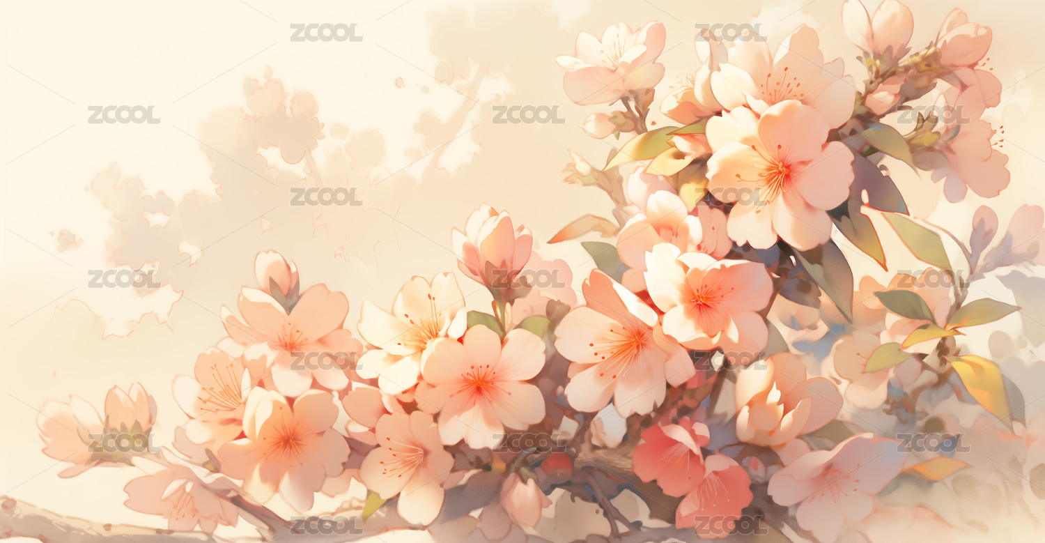 水彩樱花绽放