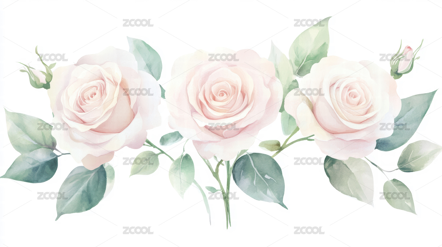 淡雅玫瑰花束水彩画