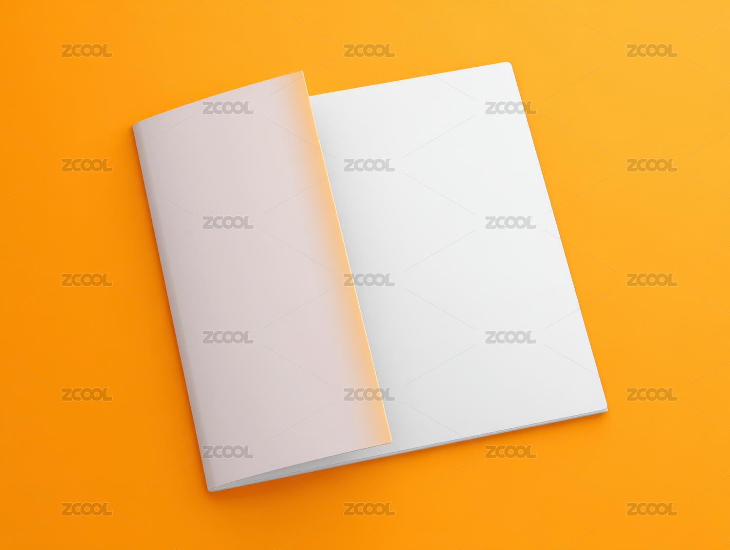 橙色背景上的空白书页