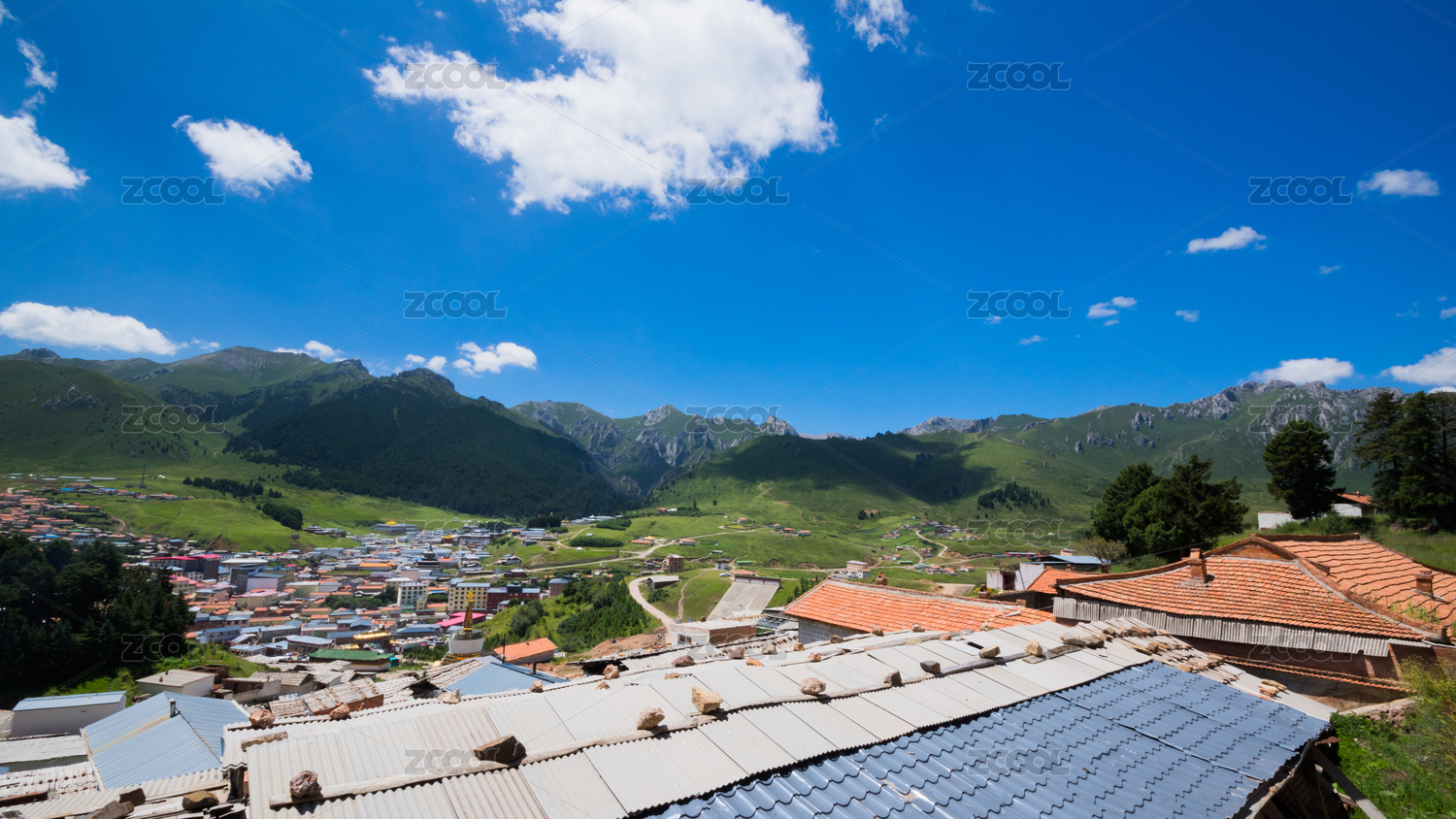 远眺中国四川省阿坝州甘肃省甘南郎木寺建筑