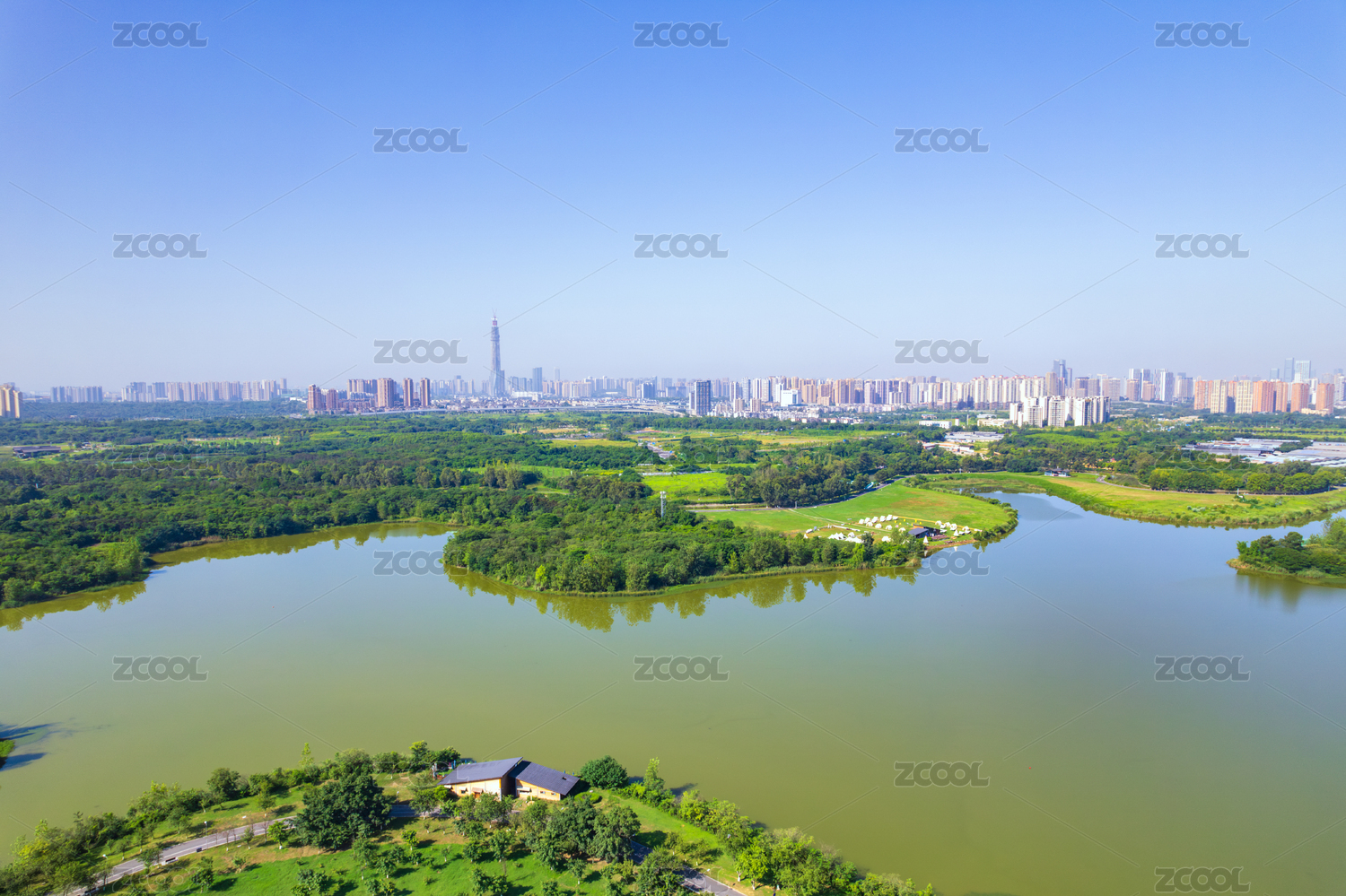 四川省成都市青龙湖湿地公园全景航拍图