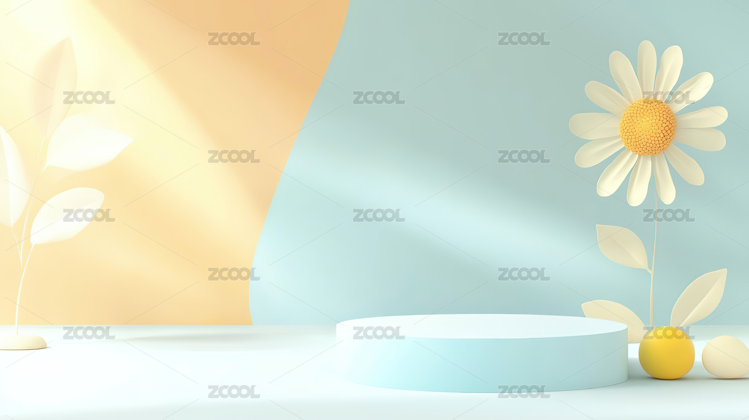 蓝色,简约,讲台,雏菊,花瓶,留白,立体,现代,设计,蓝色背景