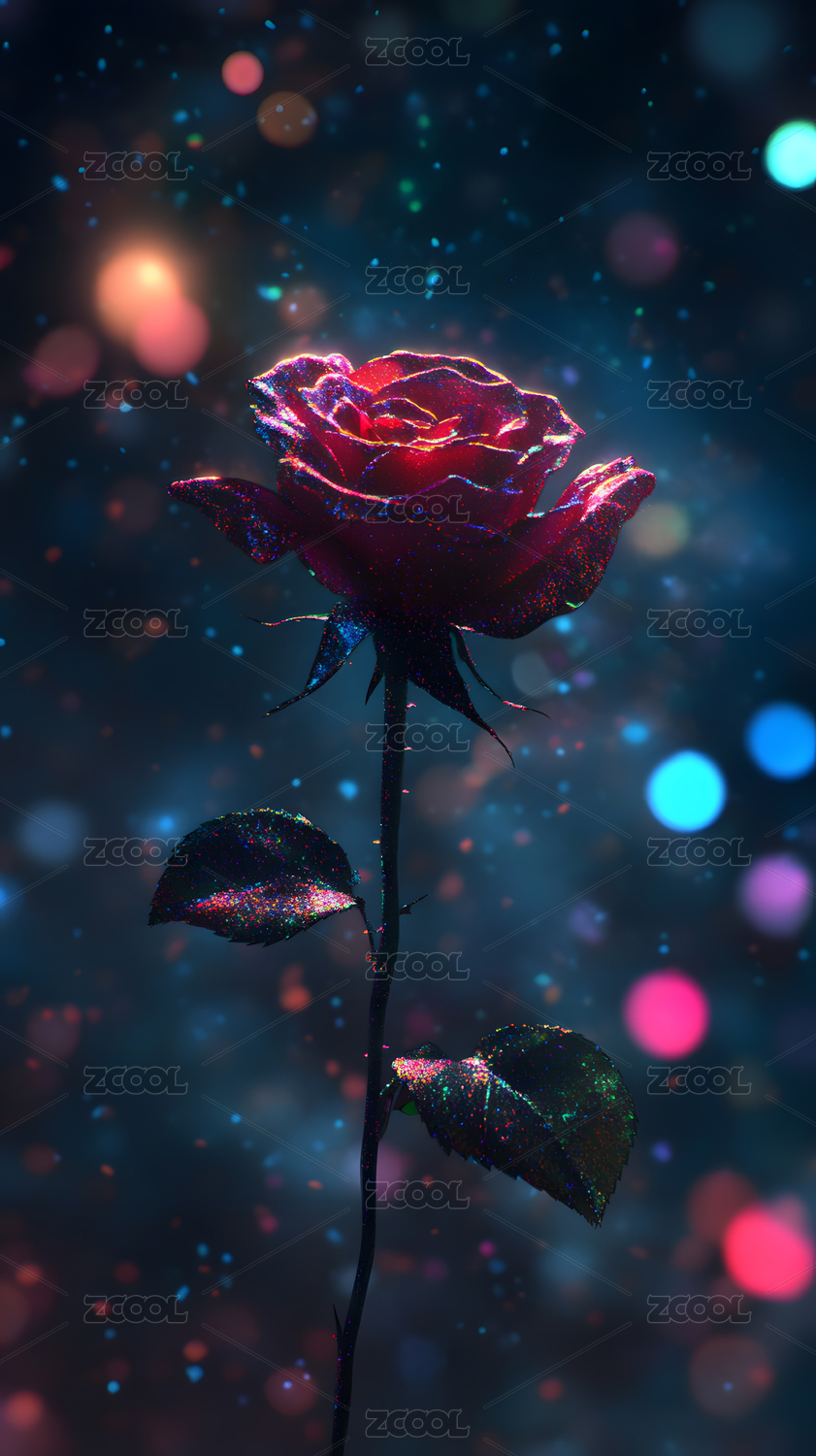 散发着霓虹光芒的玫瑰花