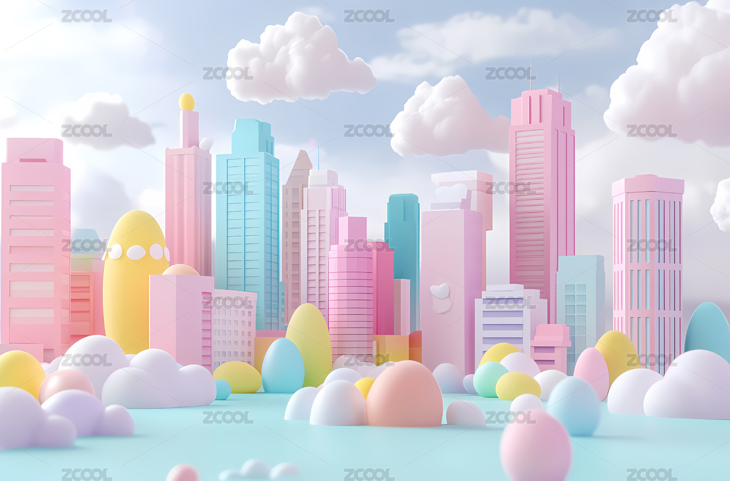 3D,自然,风景,城市,设计,图案,楼房,壁纸,壁画,插画