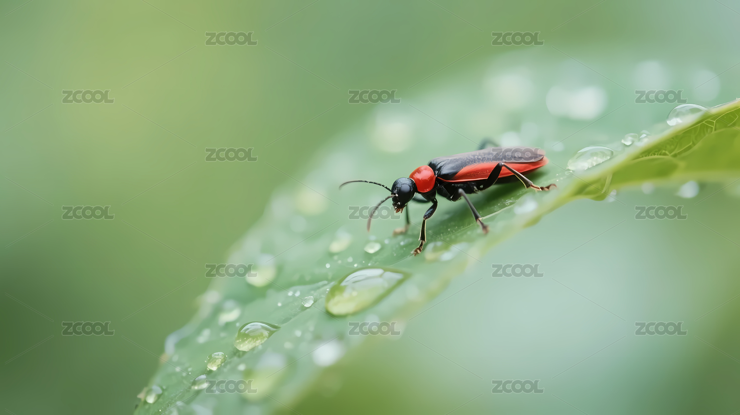 红昆虫栖息绿叶上