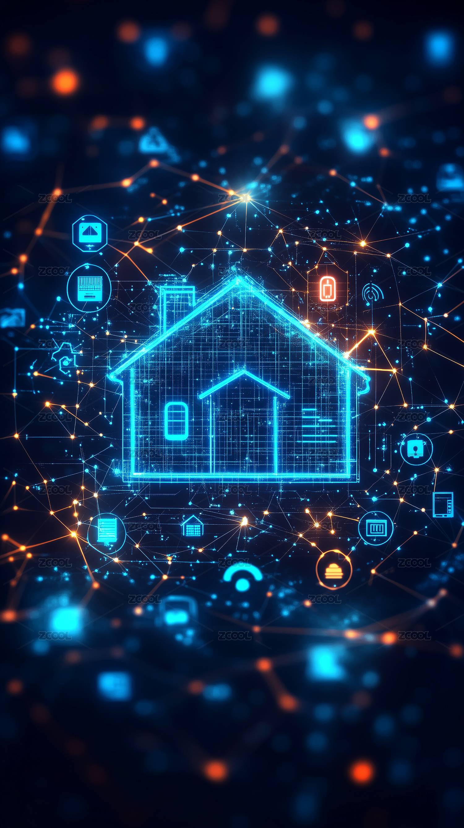 蓝色光效组成的智能家居房屋