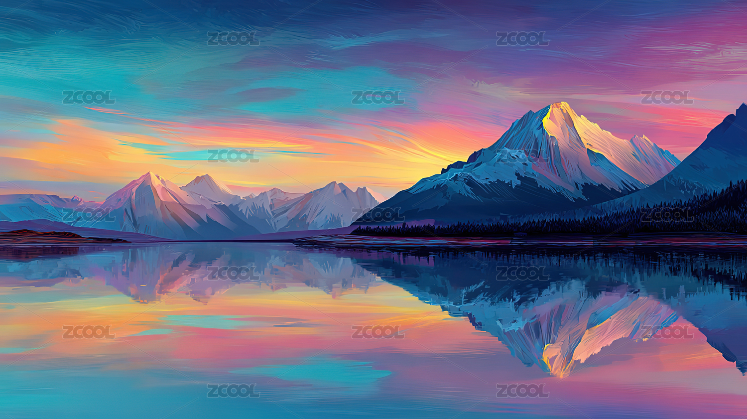 水彩风格雪山自然风光