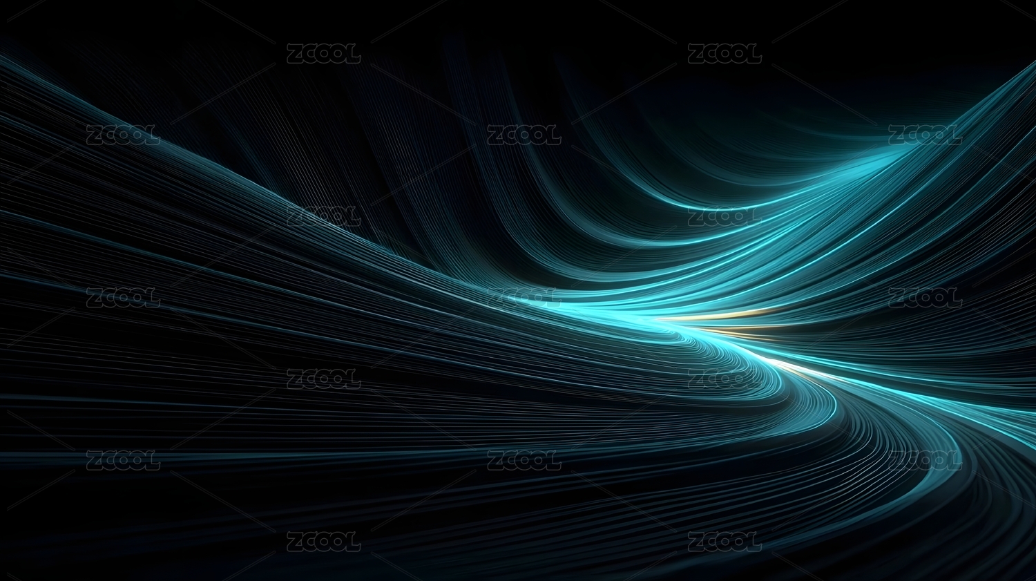 蓝色,光影,黑色,线条,曲线,流动,科技感,未来感,抽象,视觉