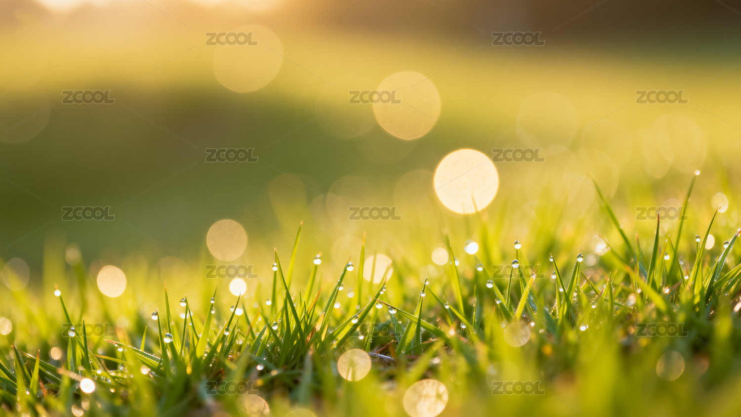 晨曦中露珠闪耀的绿草