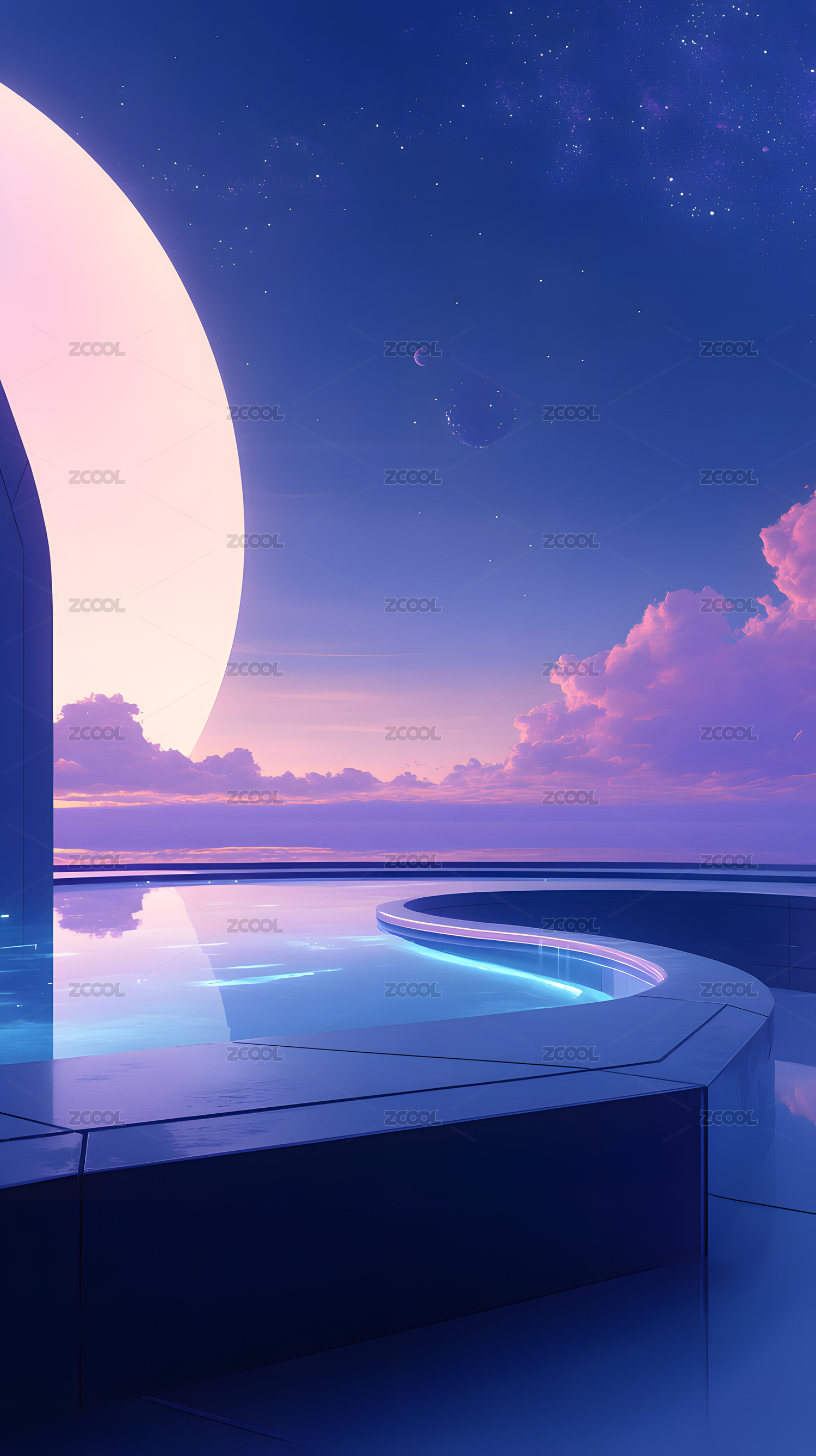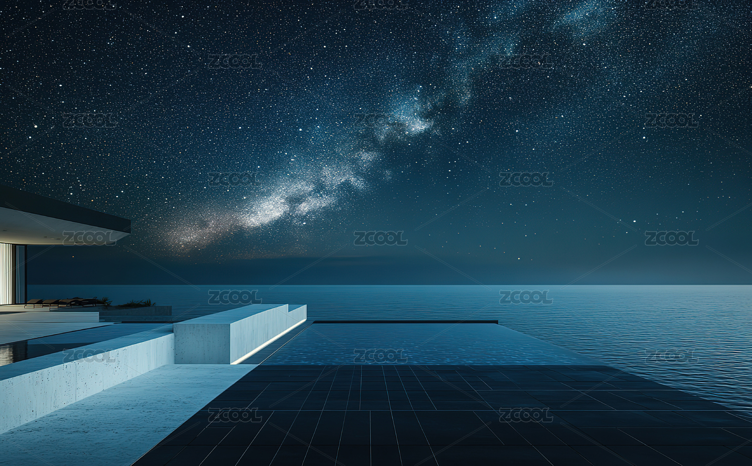 3D,科技感,光线,设计,氛围,渲染,三维,建筑,夜景,星空