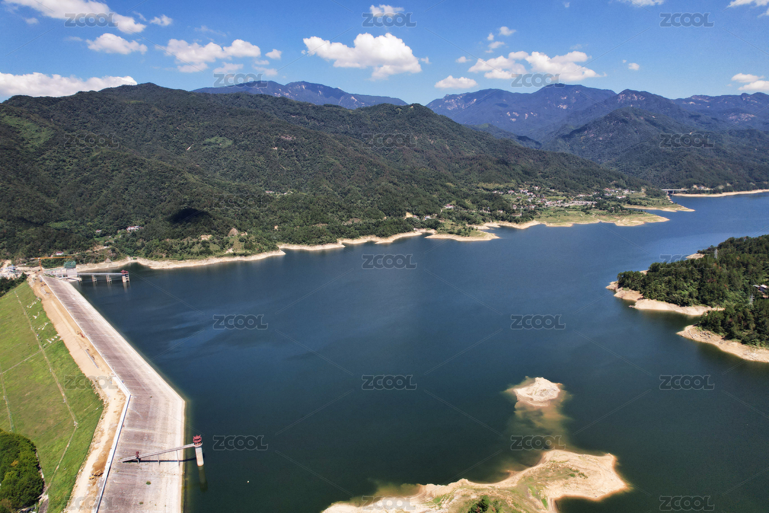 航拍湖北黄冈英山县石头咀镇张咀水库