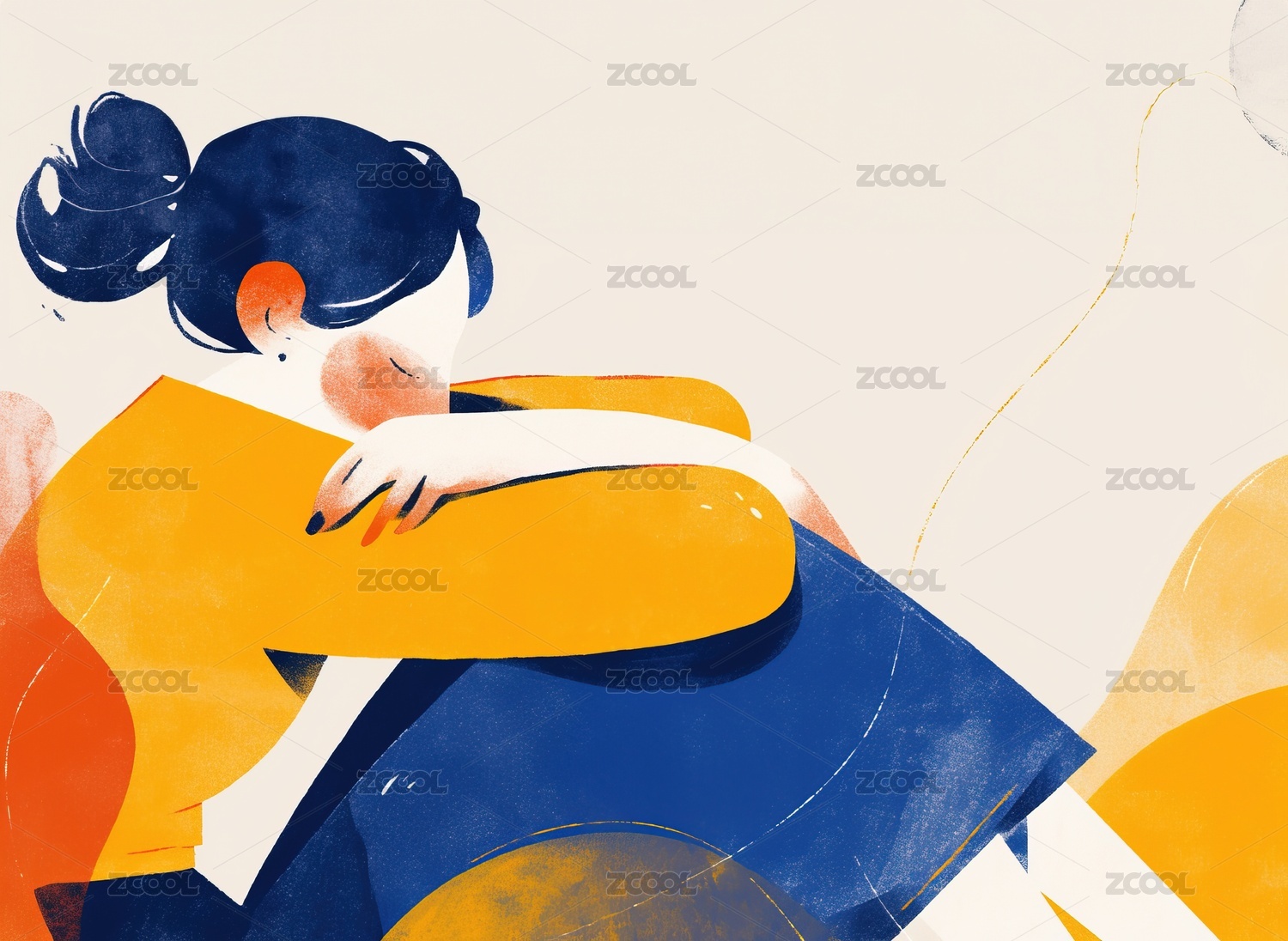 孤独的女性肖像插画