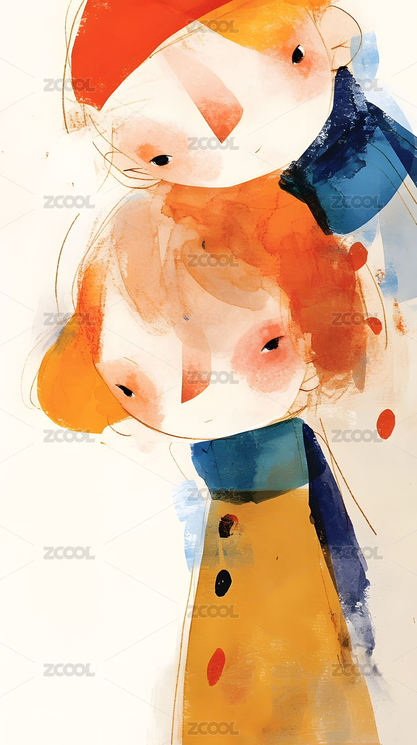 多彩抽象的卡通女孩人物插画