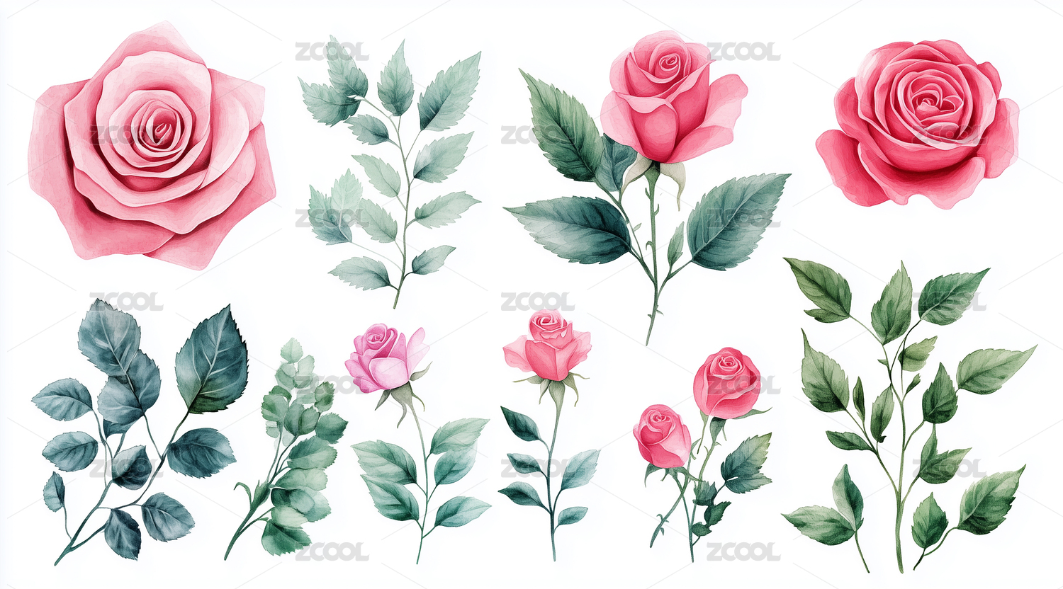 手绘水彩玫瑰花元素