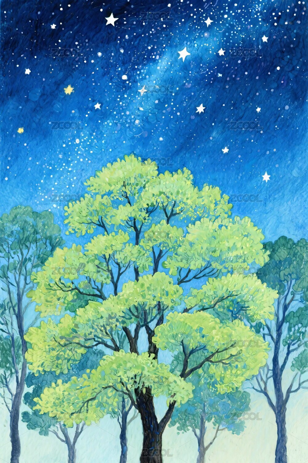 星空,色彩,梦幻,艺术,想象,自然,夜晚,森林,童话,氛围
